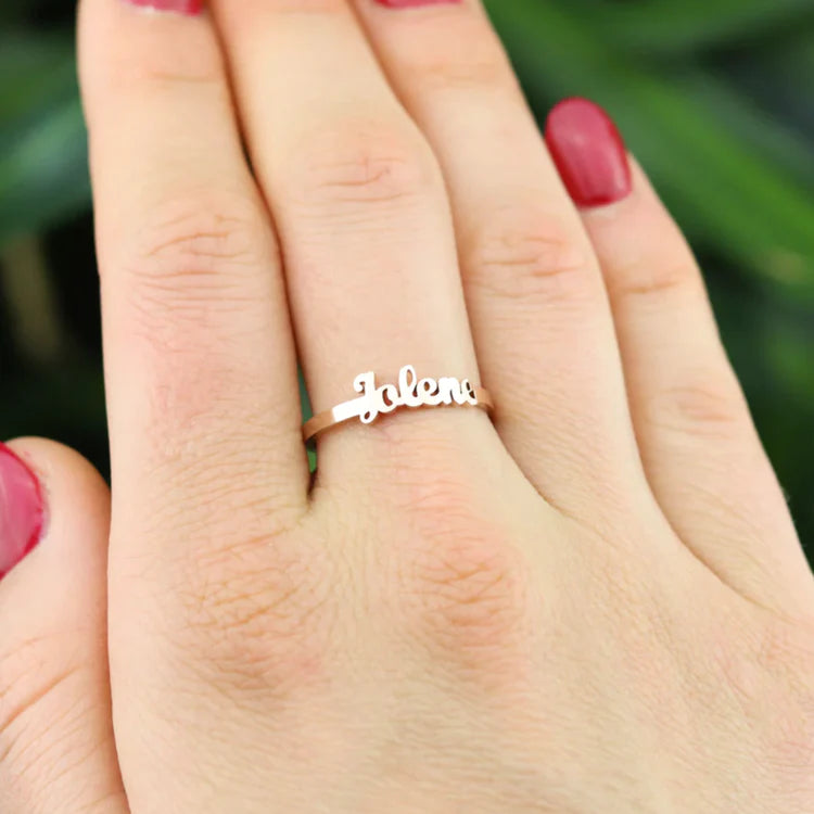 Nuestro anillo con nombre es la manera ideal de mostrarle a todos en quién estás pensando.